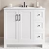 - 36" Vanity for Standard Bathrooms: This vanity (36"W × 18"D × 34"H) combines generous storage with a space-efficient design. It features a comfortable 34" height to reduce back strain. The ample countertop and smart storage solutions make it a natural fit for any bathroom, from compact guest baths to busy family spaces.