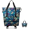 Lotus Trolley Bags for Shopping Cart,Large Capacity -Foldable Travel Bag,Shopping Bag with Wheels and Zipper Reusable Grocery Bags Foldable. (Blue)