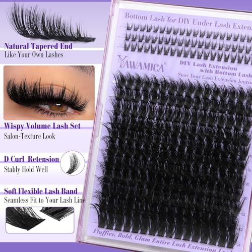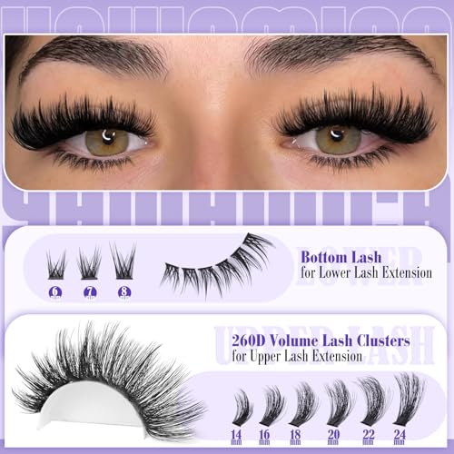 Volume Lash Clusters with Bottom Lashes Wispy Fluffy Eyelash Clusters Manga Lashes Clusters with Spikes 14-24mm Long 260D Thick Cluster Eyelash Extensions D Curl 236pcs Individual Lashes by Yawamica