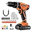 WORKBLESS Cordless Drill, Power Drill Set with 1 Battery and Charger, 40Nm, 20+1 Torque, 2 Speed, Keyless 3/8" Electric Screwdriver with LED Light, 28pcs Drill Bits Set(Orange)
