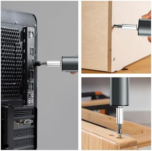 - Versatile: Designed for screw installation/removal,Electronics Repair(e.g.,, PC assembly, phone screws cameras, laptops, watches, and small appliances) ,and doubles as an electric drill . Includes 1 drill bit (3mm diameter × 45mm length) for wood, walls, rubber, or plastic (up to 1cm depth). Pro Tip: For deeper holes, pull the bit back intermittently to prevent jamming.Ideal for daily drilling tasks! “Note: Not suitable for hard materials like metal plates or concrete.to avoid damage or injury”