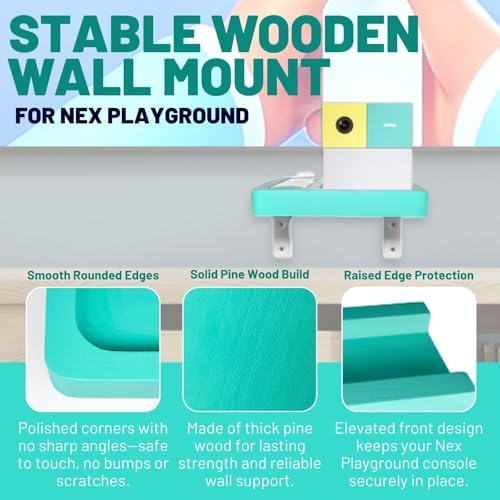 Wall-Mounted Wooden Stand Compatible with Nex Playground Console, Fixed Shelf Holder with Screws, Easy to Install Bracket for Family Gaming Setup (Mint Green)