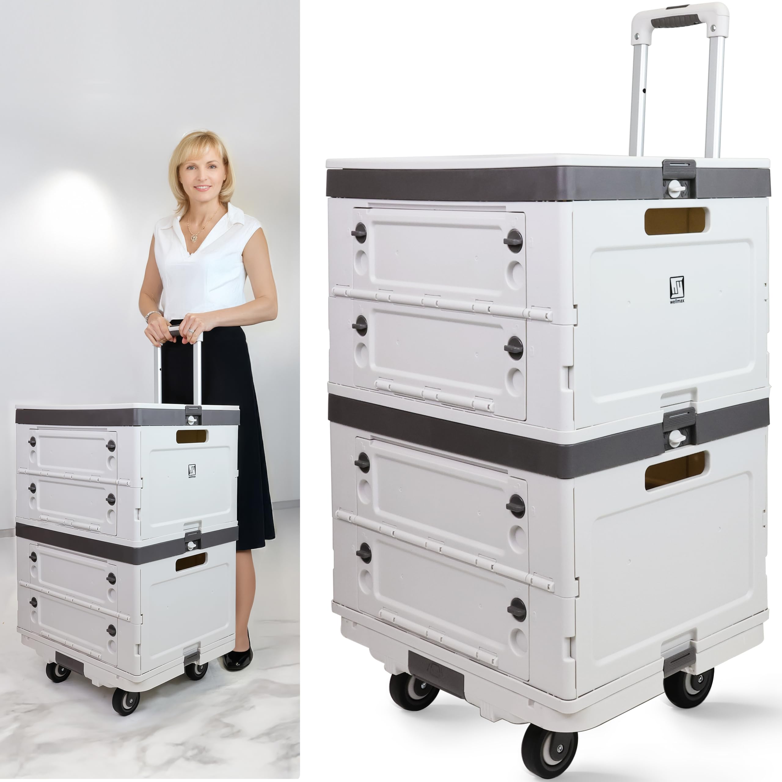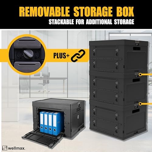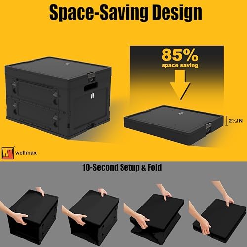Wellmax Collapsible Crate with Lid - 44lbs Stackable Foldable Crate for Groceries, Office & Car Trunk Organizing - Black
