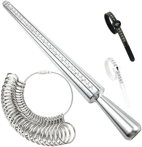 - 4-in-1 Kit Ring Sizer Kit: 1 pcs Ring Mandrel Measurer, Ring Sizers for Measuring 0-13 with Half Sizes 27-Piece, 2 Pcs Ring Measurer US Sizer 1-17 with Magnifier. From size 0 to size 17 adults—bridging gaps in conventional sizing kits where extremes are often. This all-inclusive set offers exceptional value, replacing costly individual purchases.