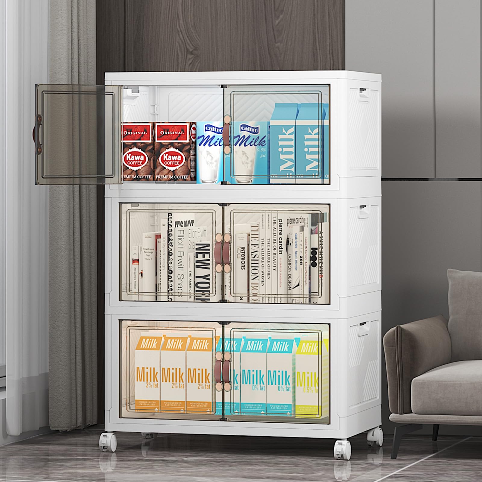 - Extra Large Capacity:UAMFURI stackable storage bins come with 5 stackable boxes (120QT each, total 600QT) to hold clothes, quilts, and tools. The front cover allows easy item identification without rummaging, while blocking dust and protecting privacy—ideal for homes, rentals, and offices. Tool-Free & Foldable, Space-Saving:UAMFURI storage bins with lids is no tools or manuals needed—unfold to use instantly. Fold flat when not in use to fit into wardrobe gaps, under beds, or corners, saving space for seasonal or temporary storage. High-Quality PP Material: UAMFURI plastic storage bins is made of thick, tough PP material for stable structure and strong load-bearing—no deformation when stacked. Use all storage bins as a stack (max vertical space) or separately for different areas, offering great value and long service life. Double-Door Design: UAMFURI plastic storage bins with lids solve the "move upper layer to fetch items" hassle! Open the top lid for full access or front door for targeted retrieval (perfect for stacked lower layers). Magnetic latches keep doors closed tightly—preventing drops and blocking dust. Movable with Wheels & Buckle Fixation:UAMFURI large plastic storage bins has 4 swivel wheels for smooth movement between living rooms, bedrooms, or balconies—easy to clean or rearrange. 2 wheels with buckles lock the cabinet in place, preventing sliding Multi-Scenario Application:UAMFURI storage bins with wheels are more than storage—it decorates too!