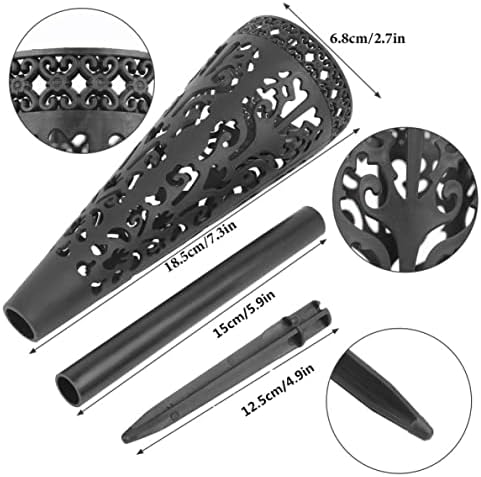 Description: Made of plastic material, this cemetery vases are and sturdy for long time use. Floral holder isfor funerals, cemeteries and grave sites. With hollow design, this cemetery vase withstand harsh rainstorms and keep your flowers upright. Features:. Cemetery Vases. Color: black. Material: plastic. Size: about 6.8x18.5 cm/2.68x7.28 inch. Note: Manual measurement, please allow slight errors on size. The colors may exist slight difference due to different screens. Package Including 2* cemetery vases