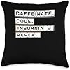 Caffeinate Code Insomniate Repeat Programmer Computer Nerd Throw Pillow