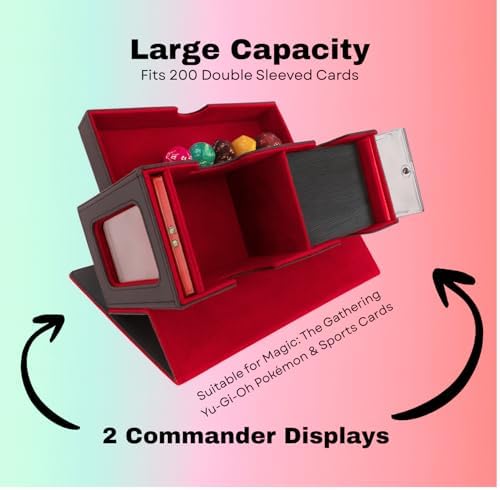 - Designed for two legendary Commanders, the Deck Box houses up to 200 double-sleeved cards, cradled in a plush, durable interior that ensures your decks arrive battle-ready, wherever your journey leads. Its dual magnetic Commander displays frame your champions like the icons they are — always visible, always revered.