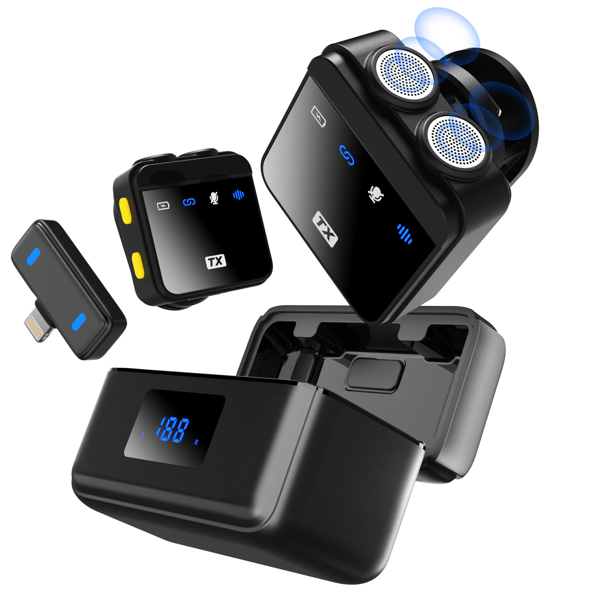 - Plug and Play, 164 Ft Transmission: The wireless mic for iphone is paired at the factory and requires no complicated setup. After powering on, the TX and RX are automatically paired. Mini wireless microphone supports 164 ft of stable transmission. Audio and video are synchronised with clarity and no distortion. Perfect for outdoor recording work.