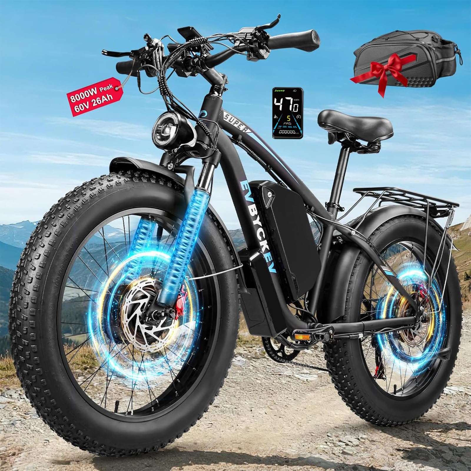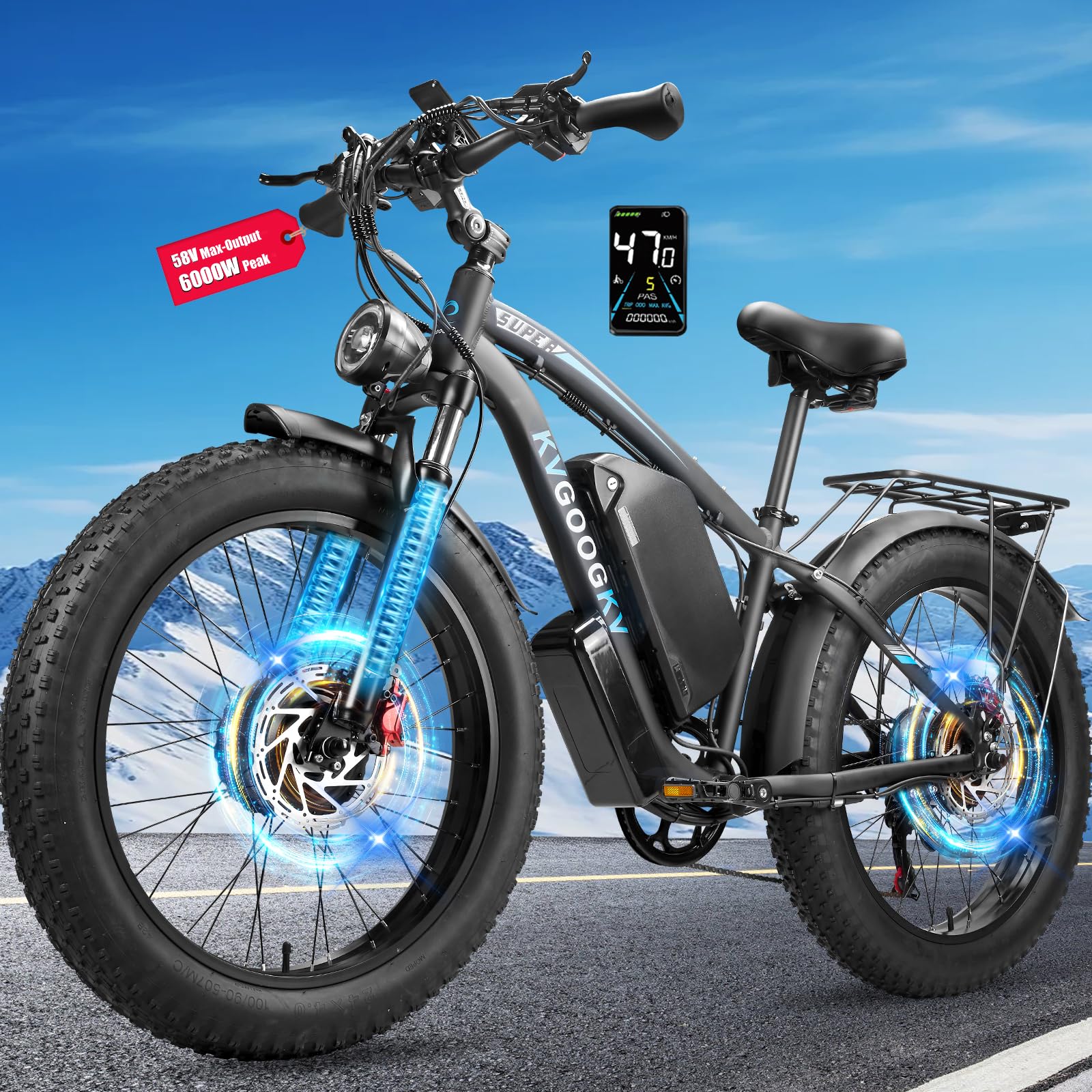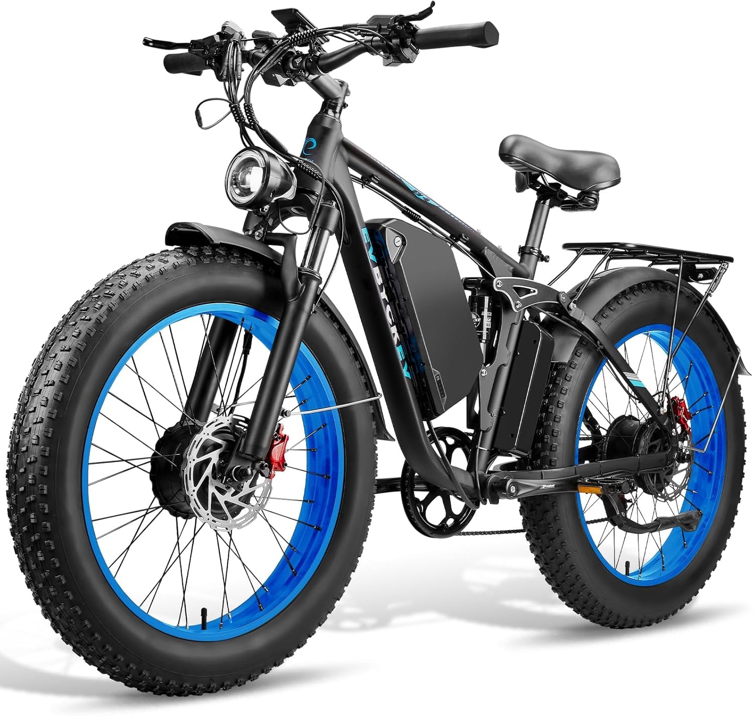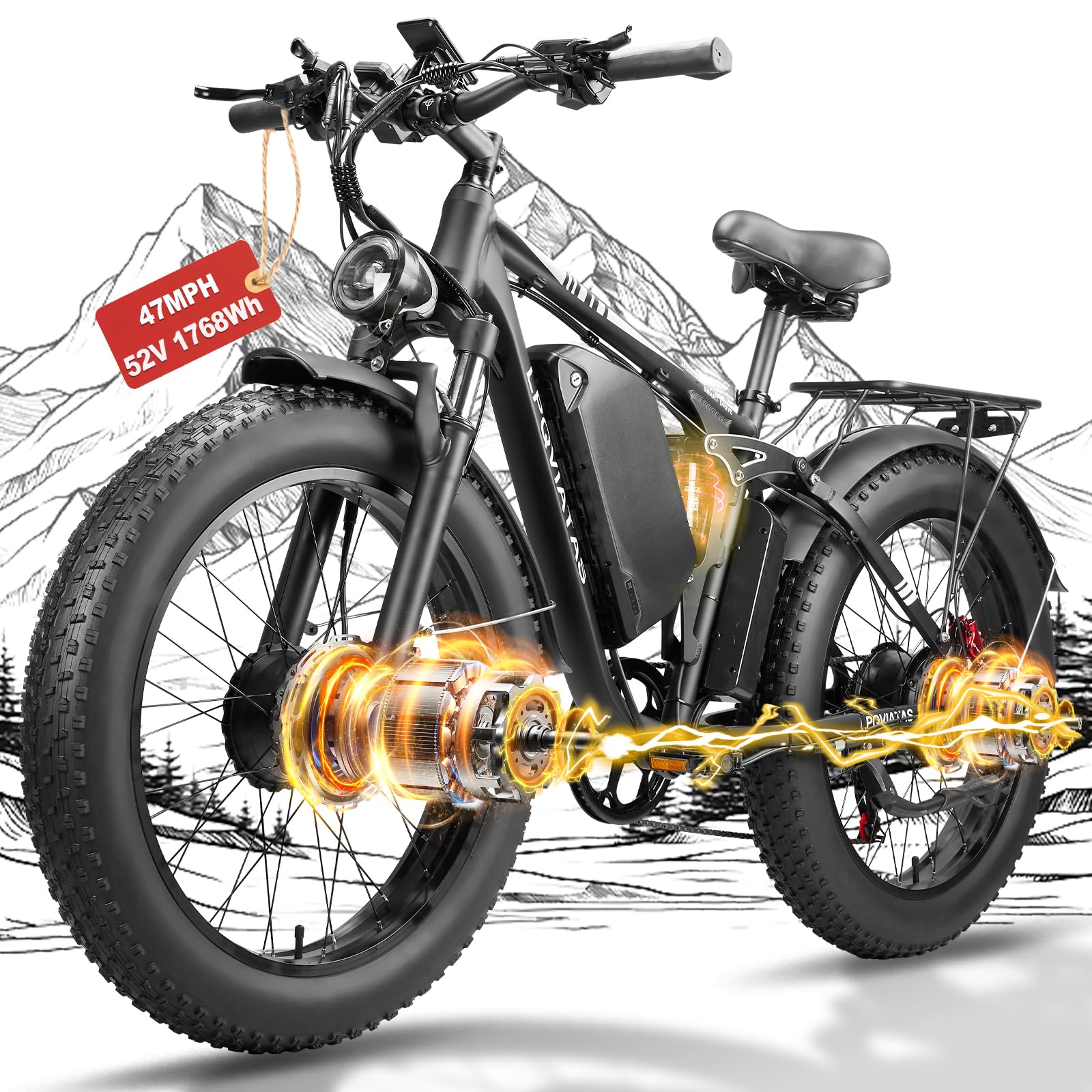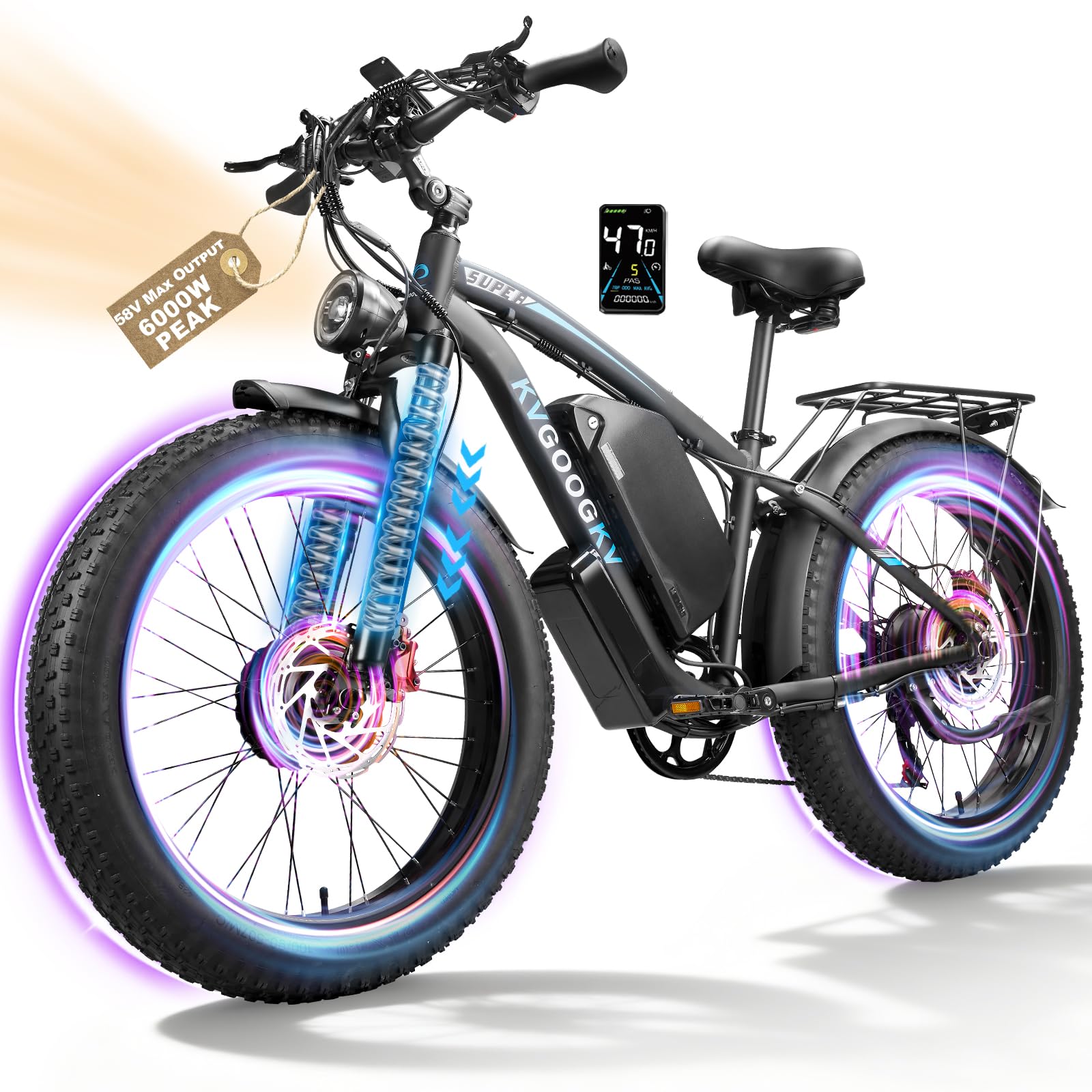 6000W Peak Electric Bike for Adults,58V Max-Output 1856Wh Dual Motor Ebike,34Ah Battery 47MPH Up to 105Miles Fast 24" x4.0 Fat Tire Ebike,Full-Suspension Mountain E-Bike for Beach Snow Sand Mountain