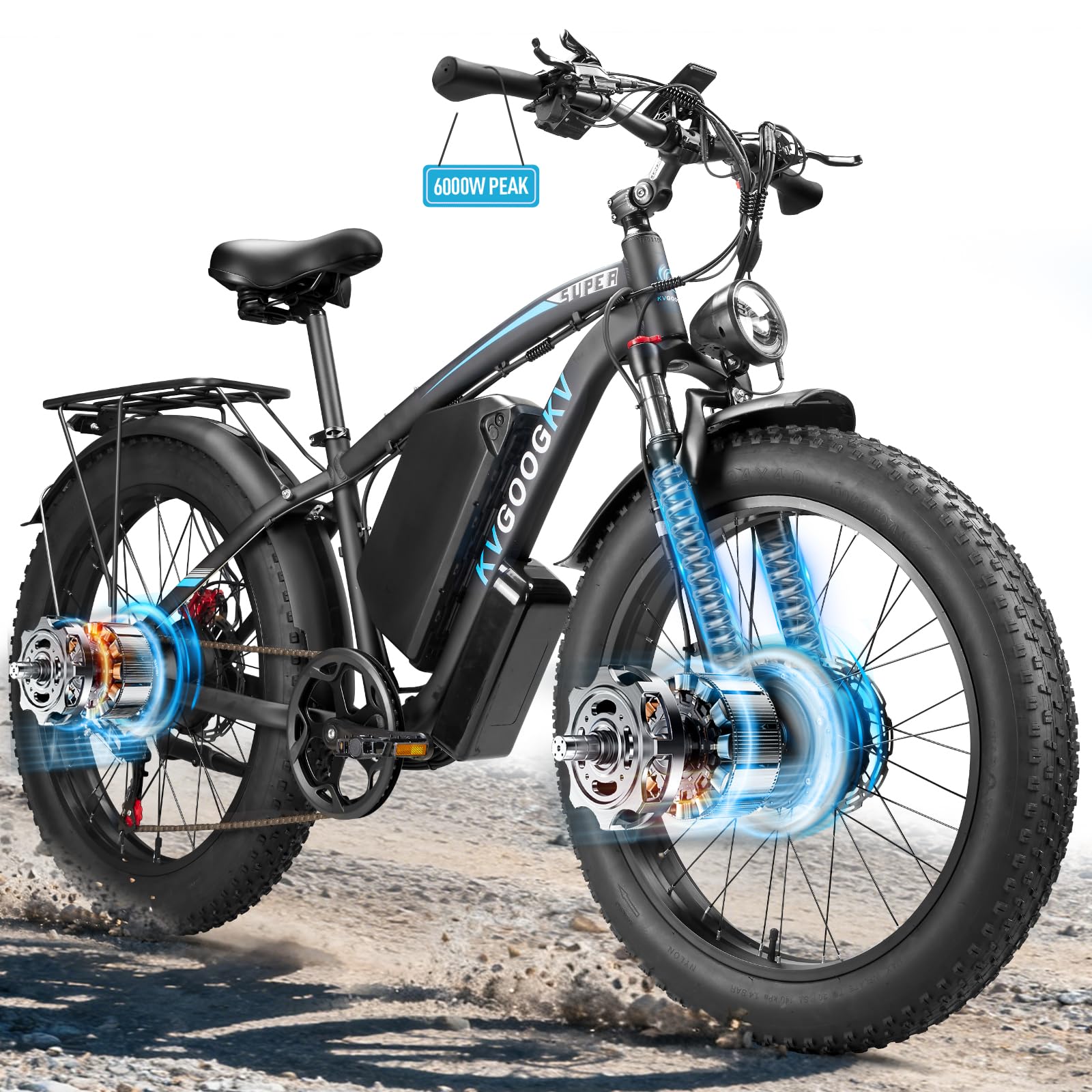 - 【Peak 6000W Dual Motors Ebike】The electric bike equipped with 6000W peak dual motors. Boasting a torque of 220N·m, this electric bike offers more stable power and support, boasting superior strength and climbing capabilities, boosted a top speed of 47 MPH - perfect for adrenaline-fueled adventures and efficient daily commutes alike.
