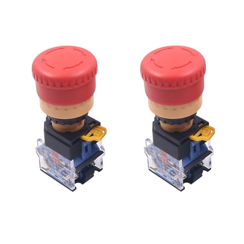 2PCS Emergency Stop Button, Latching Push Button Switch Round E-Stop Switch, IP40 Waterproof Self-Locking (B)