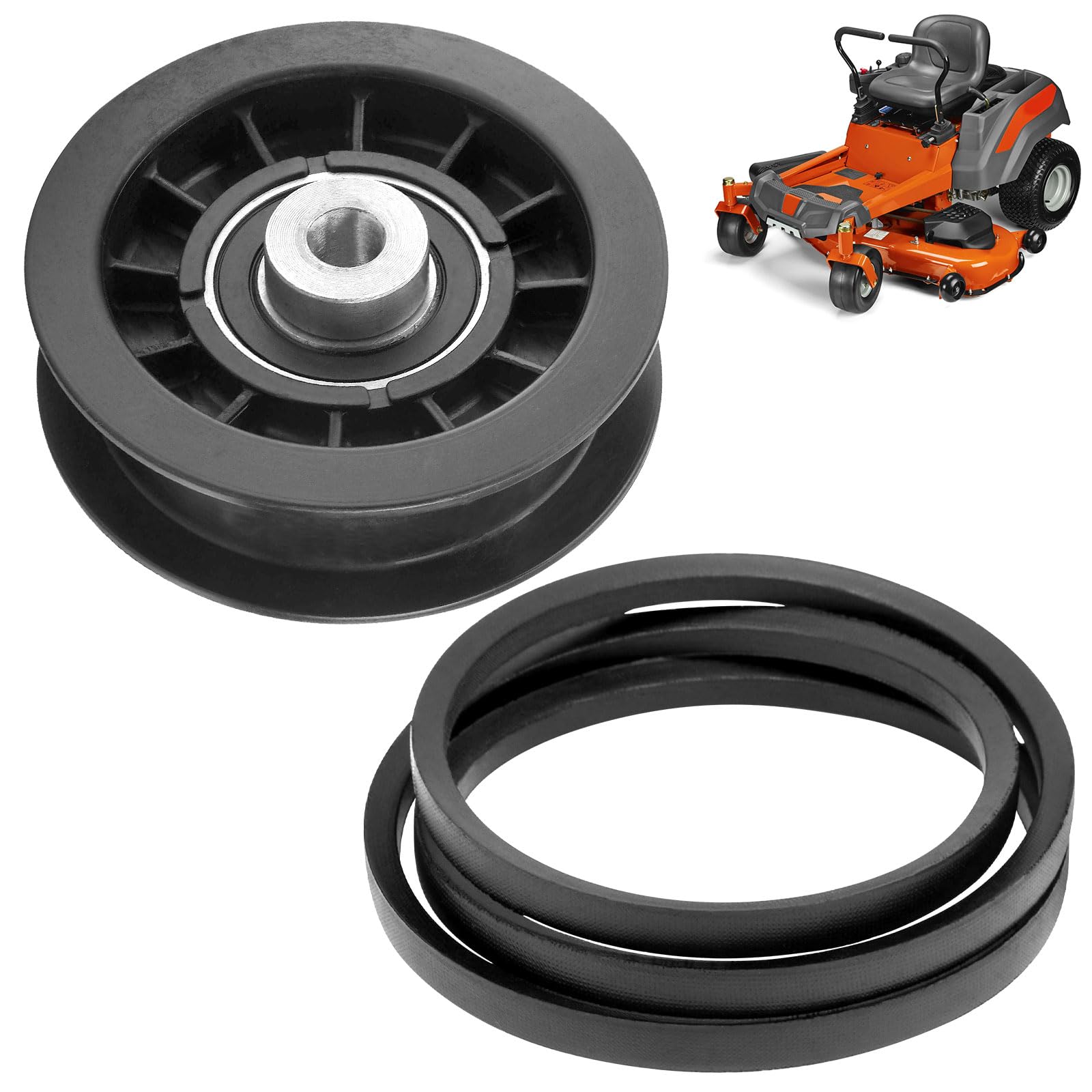 539110311 Idler Pulley & 539110411 Drive Belt Kit Compatible with Husqvarna Z254F Z200 RZ4623 CZ3815 CZ4217 Lawn Mower, Replace 607163 14259 12400