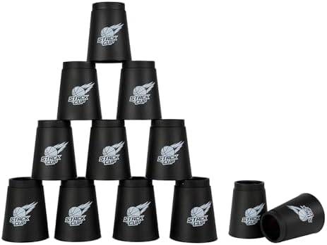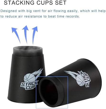 SEISSO Quick Stacking Cups, Stacking Cup Set Classic Stack Training Game Toys,12PCS Black Stacking Cup Set for Boys Girls Kids
