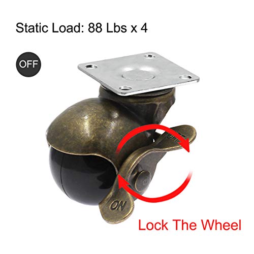 Luomorgo 1.5 inch Vintage Ball Caster Wheels with Brake 360 Degree Antique Top Plate Casters for Furniture Bench Cabinets Wheelchairs, 176 lbs Total Capacity Caster for Set of 4 (Pack of 2)