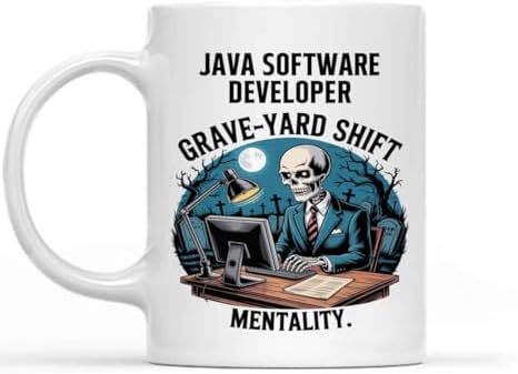 Gift Design Idea Gift Design for Java Software Developer, Workplace Friends, This Java Software Developer Has a Grave-yard Shift Mentality 11 Oz White Ceramic Coffee Mug