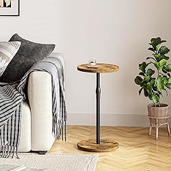 IRCPEN Adjustable End Table, Small Round Side Table, Drink Table for Small Spaces, Pedestal Nightstand for Living Room, Bedroom, Sofa Couch, Rustic Brown ET-010RB