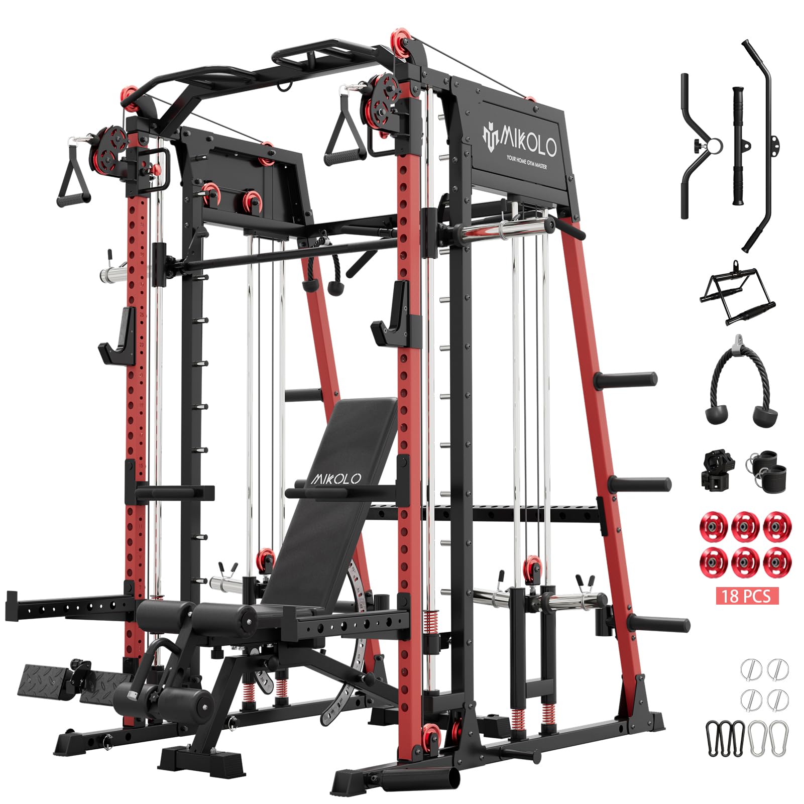 - 【Dual-Function Lat & Row System】 The Mikolo Smith Machine's professional dual-function system combines a high-position lat pulldown and seated row with a patented 15° elevated cable pivot that optimizes muscle engagement and reduces spinal stress. It features seamless transitions between exercises without carabiner adjustments for both isolation movements and compound exercises - all built with commercial-grade durability for lifetime home gym performance