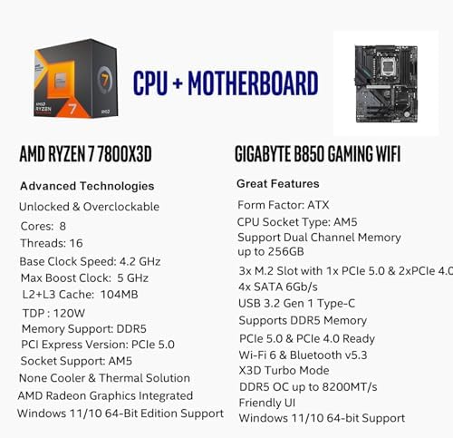 AMD Ryzen 7 7800X3D+ GIGABYTE B850 Gaming WIFI