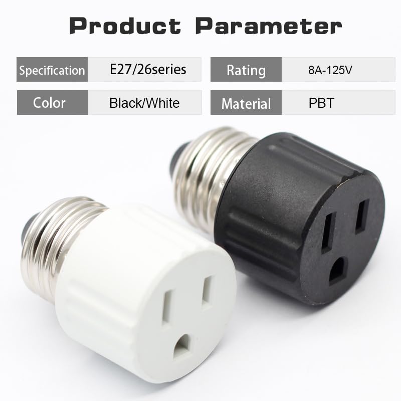 2 Pack, Light Socket to Plug Adapter, Light Outlet Socket Splitter Converter, Polarized Bulbs Plug Adapter