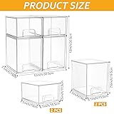 Baby Bottle Organizer: This 4-pack stackable drawer organizer efficiently organizes baby bottles and accessories, keeping all newborn supplies neat, easy to access, and effectively dust-free. The bottle organizer drawer is the ideal choice for maintaining a tidy nursery or kitchen. Stackable Design: The set includes 2 medium storage boxes (6.1 x 7.5 x 7.6 inches) and 2 small storage boxes (6.1 x 7.5 x 4.5 inches). Featuring a stackable design, these storage containers save significant space when stored vertically. You can freely mix, stack, and arrange them according to your needs. Clear and Visible Material: This bottle organizer is crafted from high-transparency plastic, offering crystal-clear visibility so you can easily see and access items inside. It effectively protects against dust and moisture, keeping your feeding accessories security and clean. Multi-Purpose Organizers: Our baby bottle storage organizer drawers can help you organize various spaces and are suitable for countertops, under sinks, offices, kitchen cabinets, storage shelves, laundry areas, medicine cabinets, garages, dressing tables, craft rooms, and many other scenarios. Convenience Design: This stackable drawer with handle features smooth handles and a non-slip mat, ensuring smooth operation and stable placement. The smooth surface can be easily wiped clean with soap and a damp cloth. Do not dishwasher safe.