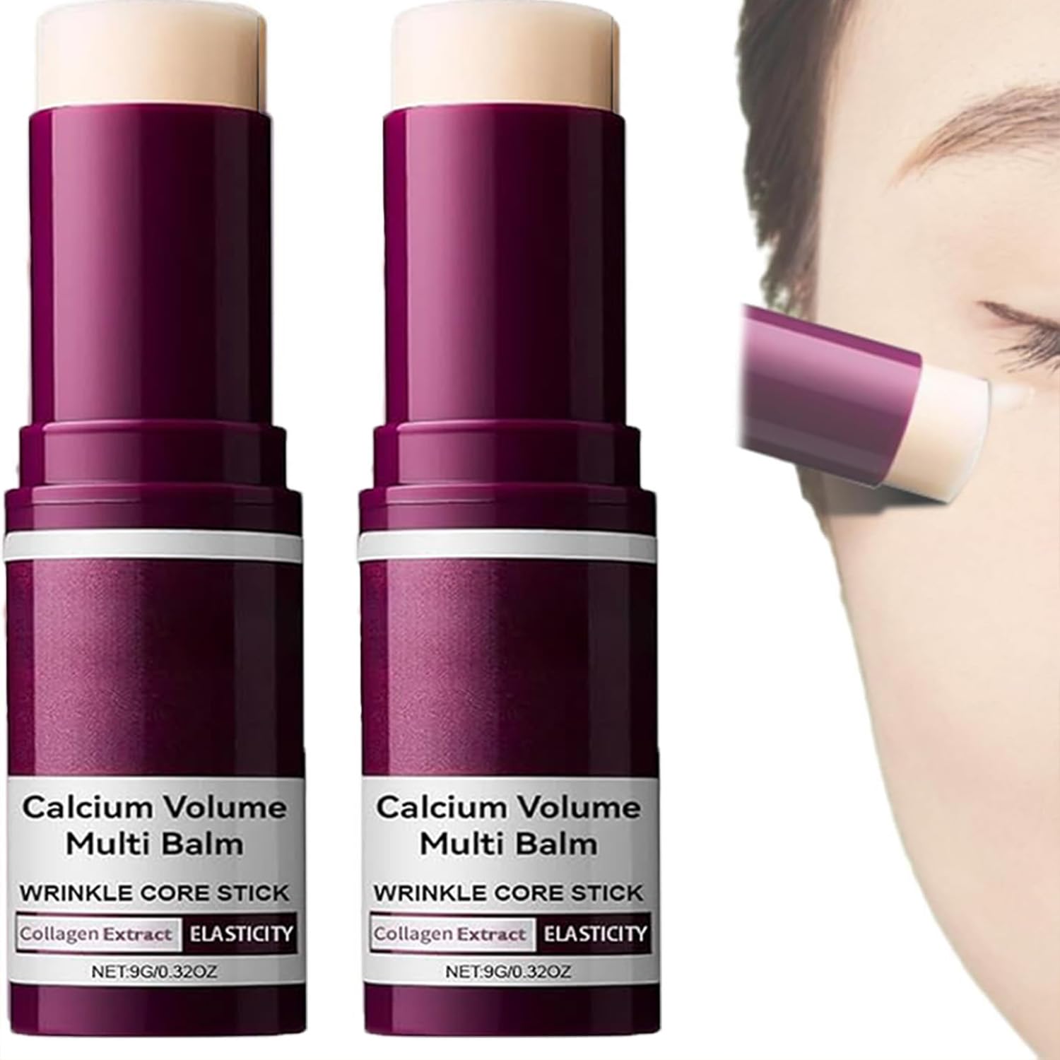 2PCS Calcium Multi Balm Stick - Calcium Volume Multi Balm, Korean Collagen Anti Wrinkle Stick, Anti-aging, Hydrating, Almond & Vitamin E for Eyes, Neck, Face