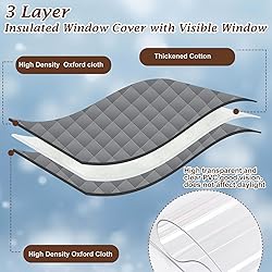 Visible Thermal Window Insulation Kit for Winter, Winterizing Insulated Window Cover Waterproof Oxford Cloth Cotton Layer Reusable Insulated Curtain Blanket Cold Protector for Home Attic RV Keep Warm