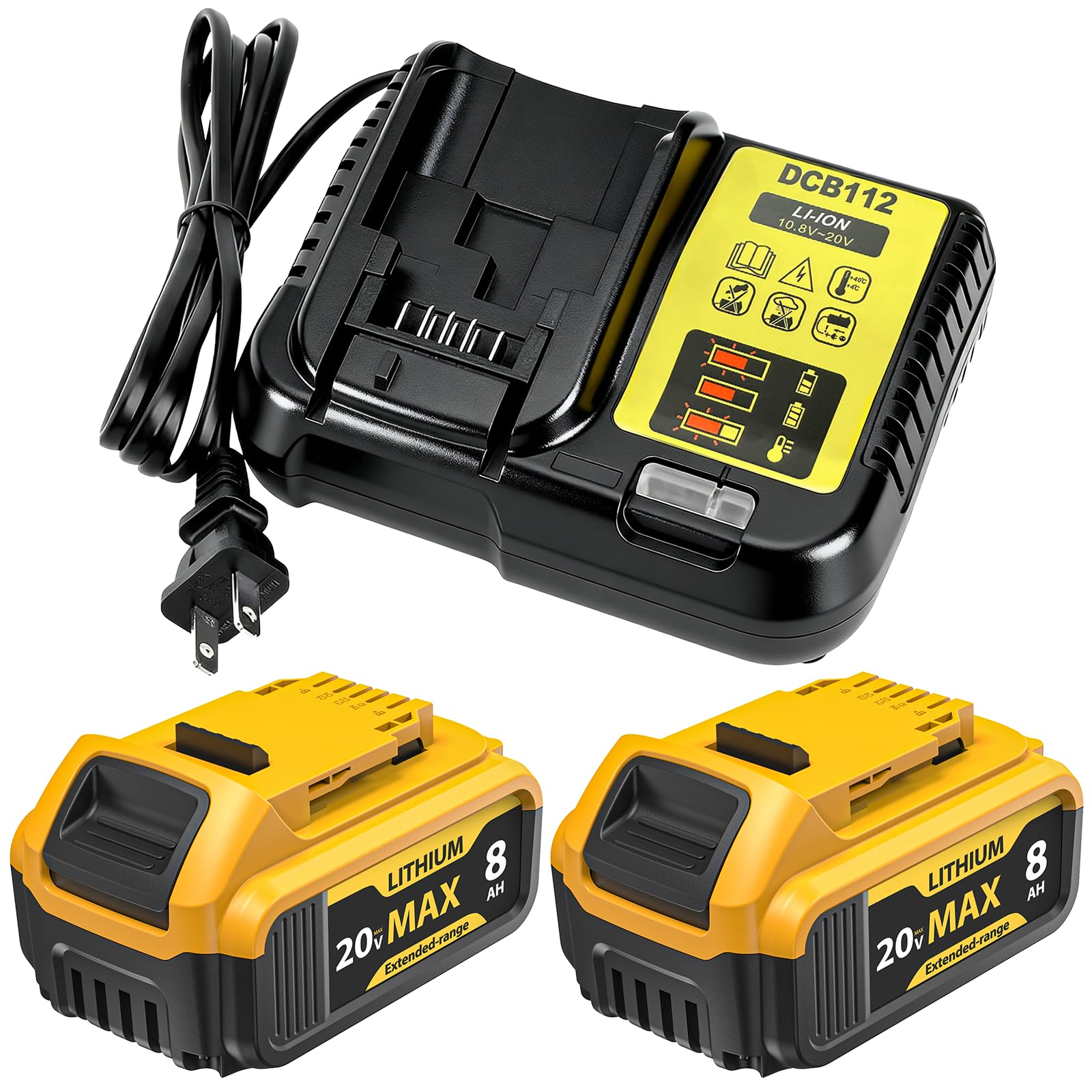 2-Pack 8000mAh 20V Max Lithium-Ion Battery & Charger Combo, High Capacity Replacement for DEWALT 20V MAX Battery Power Tools, Fast Charging Included