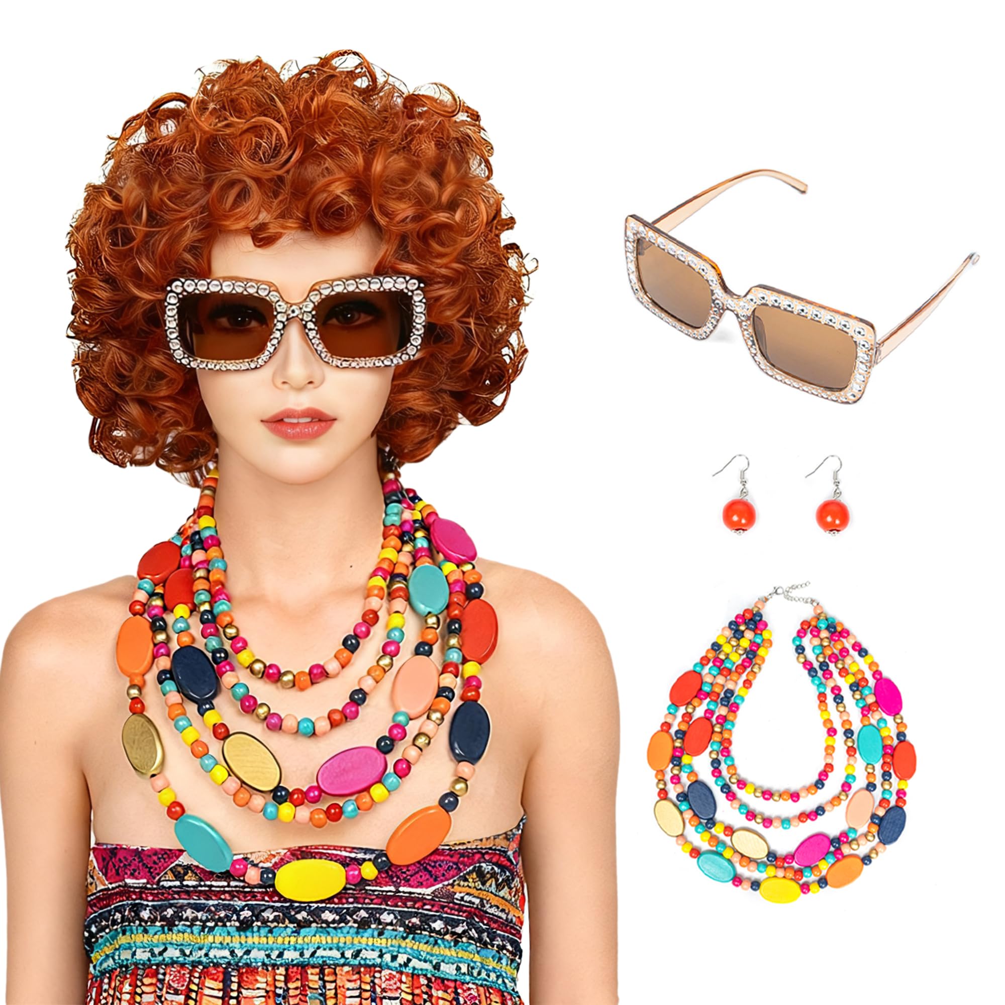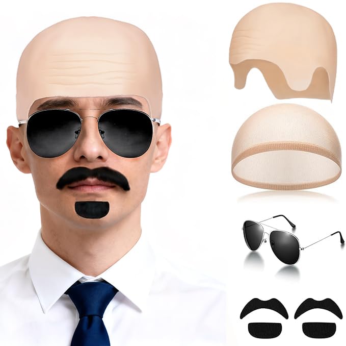 FVCENT Wrestling Costume set Blonde Wig Fake Beard Bandana Headscarf Hat silver Cross Necklace Wristband Halloween Cosplay