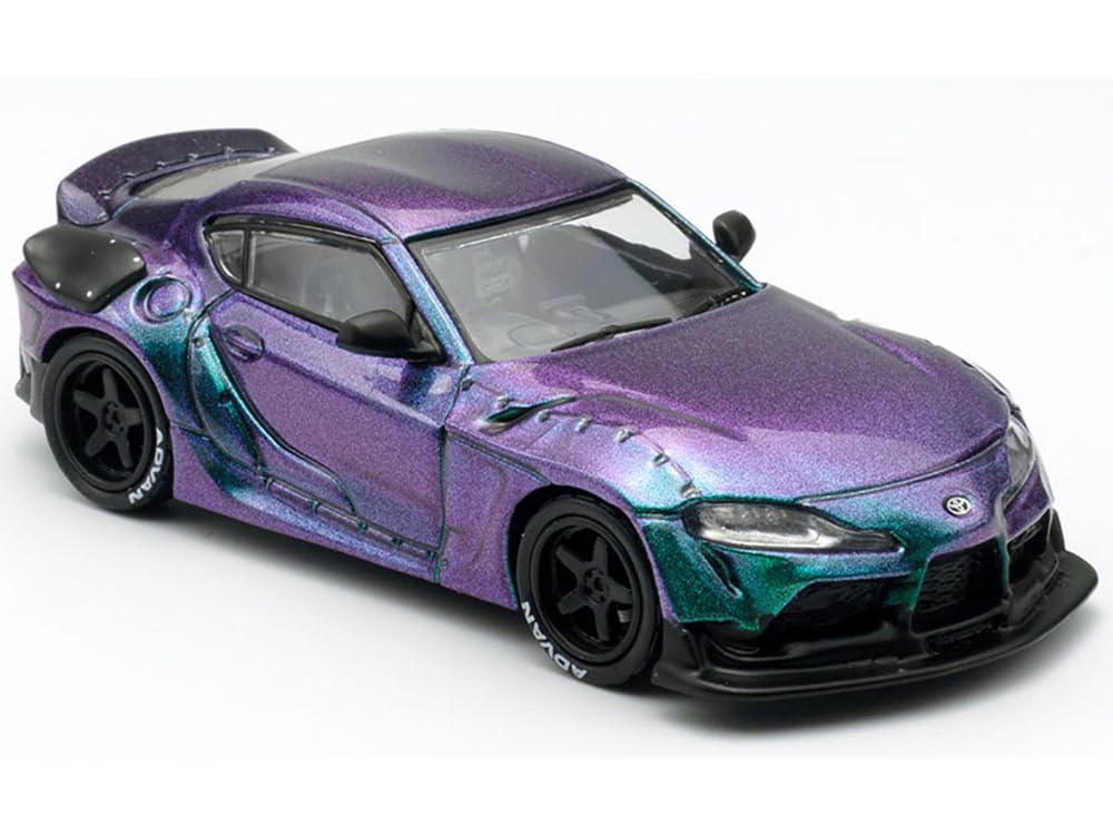 The Toyota HKS GR Supra RHD (Right Hand Drive) by Pop Race is a 1/64 diecast model featuring a stunning magic purple metallic finish and aggressive HKS-inspired styling. With precise detailing, realistic aero components, and premium construction, it’s a standout collectible for JDM and high-performance car enthusiasts.