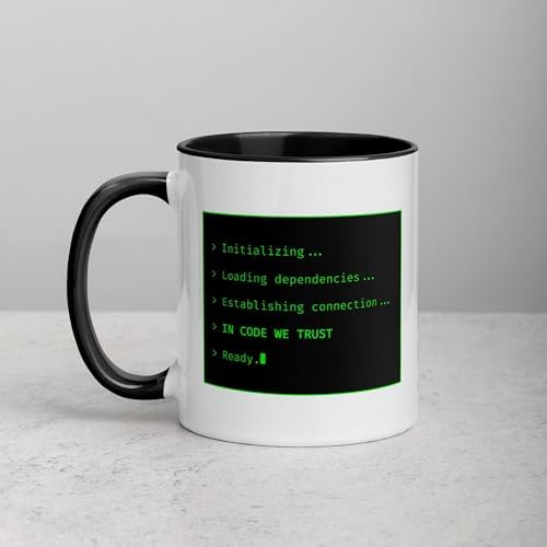 Programmer Coffee Mug Funny Coding Console Cup, In Code We Trust Geek Gift for Coder, Developer, IT or Software Engineer, Nerdy Office Desk Coffee Cup, Tech Lover Birthday or Christmas Gifts, 11oz