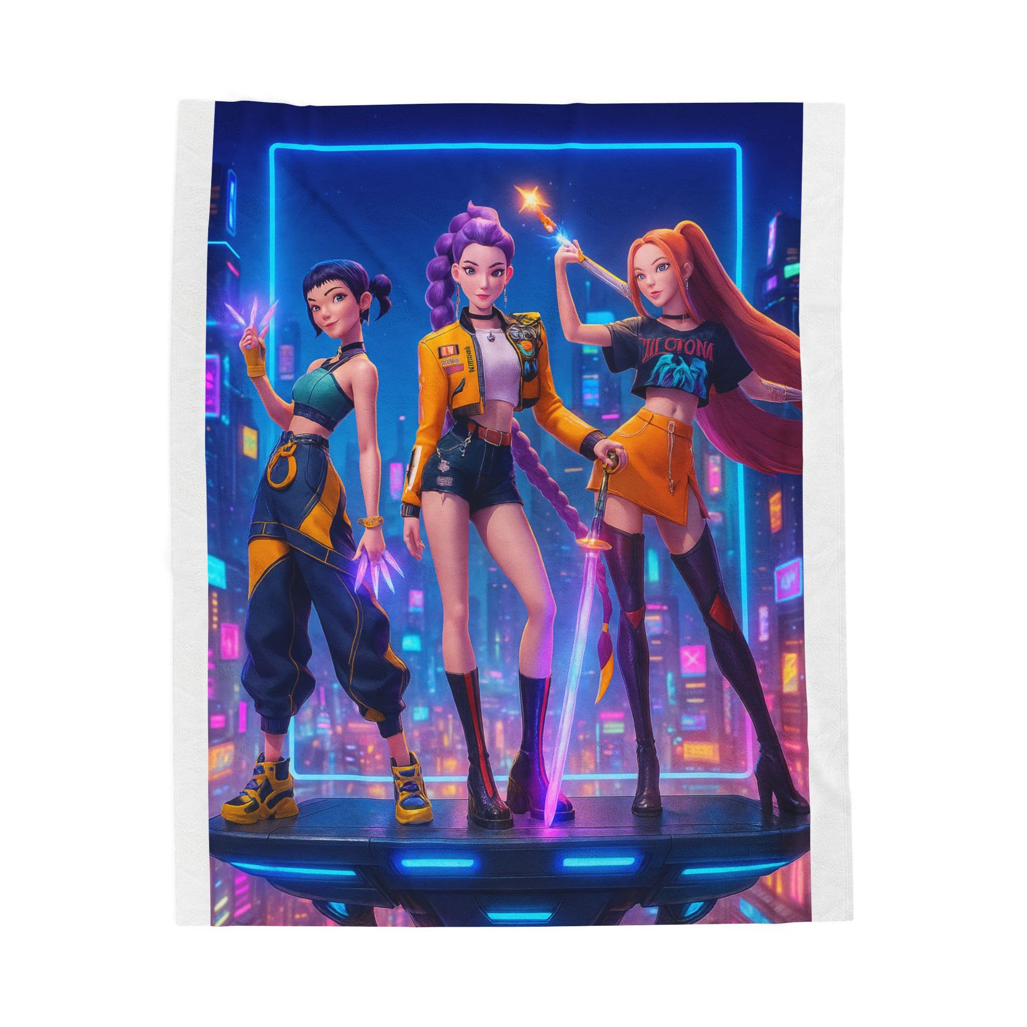 Stay cozy with this Demon Pop Hunters Velveteen Plush Blanket featuring K-Pop & Anime art. Perfect for fans of Korean fantasy, this throw is ideal for couch and bed decor. A must-have for those who love to snuggle up with their favorite shows and characters. Product features - Double needle topstitch on all seams for durability - 100% polyester or polyester/spandex blend for shape retention and quick drying - Ideal for adults - Meets various safety requirements and compliance standards - Vibrant high-detail print on one side of the blanket Care instructions - Do not dryclean - Do not iron - Tumble dry: low heat - Do not bleach - Machine wash: cold (max 30C or 90F), *hand wash will extend the quality of the product