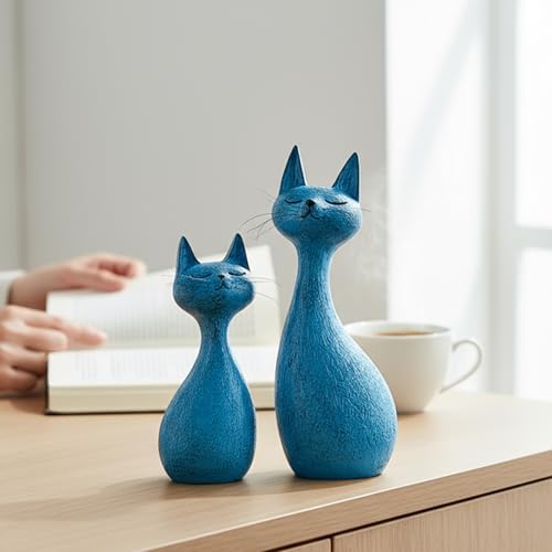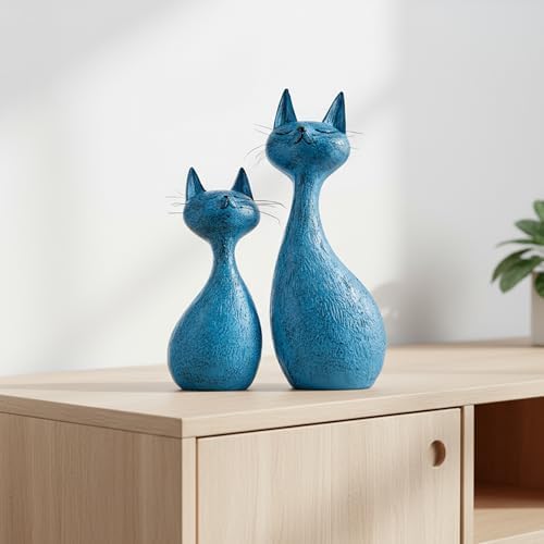 - Modern Abstract Design: This elegant cat statue set features smooth, minimalist lines and a vivid blue finish that adds a pop of color and artistic flair to any space. Perfect for modern, Scandinavian, or eclectic home decor styles