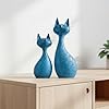 Octdays Cats Statues Home Decor, Navy Blue Cat Figurines Table Shelf Decor, Modern Animal Sculptures Decorations for Living Room Office Dining Room Apartment (Set of 2)