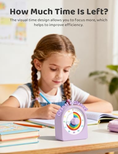 LIORQUE Visual Timer for Kids with Pause Function,Timer for Kids and Adults, Protective Case, Silent Time Management Tool, 60-Minute Countdown for Classroom, Office, Meetings, Study, Kitchen(Rainbow)