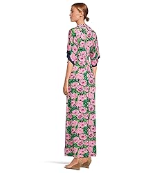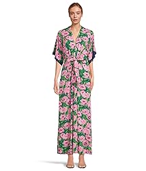 - 40" Fit and flare, ankle length maxi dress with deep v-neckline, kimono sleeves, and functional front tie detail at waist