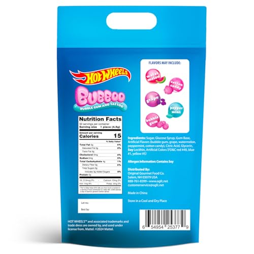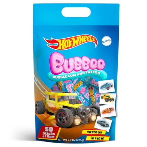 - Hot Wheels Bubble Gum and Temporary Tattoos Set - Bubboo Set with 50 Pieces of Bubblegum in 5 Flavors and 50 Temporary Tattoos for Boys, Kids | Hot Wheels Party Favors Pack.