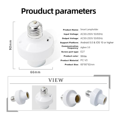 2 Pack Light Socket Adapter, Zigbee Protocol Remote Control,E26/E27 Bulb Adapter, APP Remote Control, Smart Lamp Socket Power Adapter
