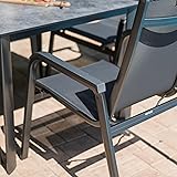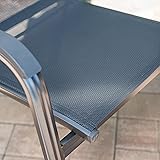 (4) Basic Plus Stack Chairs, Gray (1) 37" x 37" HPL Dining Table High grade anthracite powder coated aluminum frame Polymer resin armrests coordinate with frame and remain cool to the touch Premium, quick drying anthracite Textilene sling guarantees comfortable ergonomic seating while also allowing superior drainage Replaceable foot glide inserts prolong the life of the chair