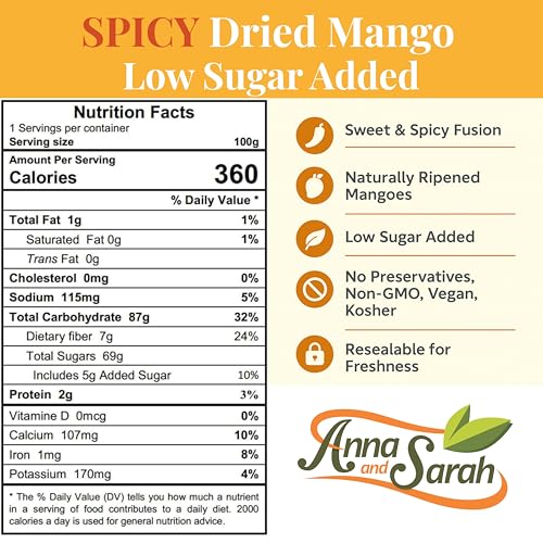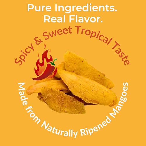 - Deliciously Spicy & Sweet: Enjoy the perfect balance of tangy sweetness and spicy heat with our low sugar added dried mango. A perfect snack for those who love bold flavors!