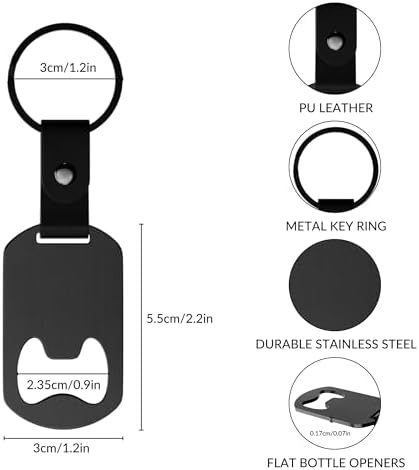 - METAL & LEATHER MATERIAL: Crafted from high-quality stainless steel (durable, rust-resistant) and PU leather (soft, wear-resistant), this keychain bottle opener is built to last. It withstands daily use, ensuring longevity whether you carry it on your keys or use it as a bottle opener.