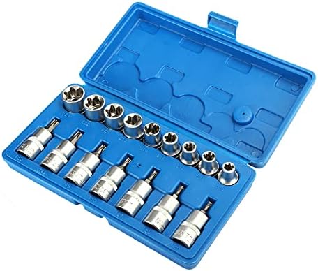 SpecificationConditon: NewItem Type: Star Socket SetMaterial: Chrome Vanadium SteelColor: As Pictures ShownPackage List9 x 1/2In Female Star Sockets (E10,E11, E12, E14, E16, E18 E20, E22 E24)7 x 1/2In Male Star Sockets (T20,T25,T27, T30, T40, T45, T50)