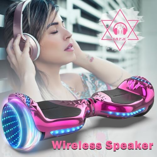 - DAZZLING CRYSTAL LEDS & BLUETOOTH BEATS — Be the center of attention with this hoverboard's unique, super-bright Crystal LED wheels that create a stunning light show as you ride. Instantly connect your phone to the built-in wireless Bluetooth speaker for an extraordinary sound experience. Imagine cruising down the block, your favorite music setting the vibe, while the flashing lights make you the eye-catcher in any crowd.