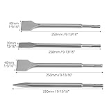 Complete Set of Chisel Types: Includes four essential chisel bits: a 10" point chisel, a 0.8" wide flat chisel, a 1.6" wide scaling chisel, and a 3" wide tile chisel, offering versatility for various demolition tasks. Superior Material and Durability: Crafted from 40CrMo alloy steel, the set undergoes a proprietary heat-treatment process to maximize hardness and ensure long-lasting performance. Shank Compatibility: Designed to fit most rotary hammer drills, Compatible with Bosch, Dewalt, Milwaukee, Hilti, Makita, and Hitachi, ensuring seamless integration. Versatile Applications: Designed for efficient removal of old tiles, walls, ceilings, laminates, thinset, rust, weld spatter, concrete splatter, mortar, and adhesives, ideal for DIY enthusiasts and professional contractors alike.