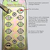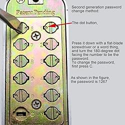 - Specifications: Material: Zinc Alloy Lock body material: Steel + zinc Applicable door thickness: 30-60mm Applicable type: indoor, outside the door Password length: 1-11 digits Center distance of the lock tongue: standard 60mm Panel: 142 x 42 x 25mm / 5.6 x 1.7 x 1.0 inch (appr.) Lock body: 14.2 x 4.4 x 6.4cm / 5.59 x 1.73 x 2.52 inch (appr.) Second generation password change method: the dot button, press it down with a flat->blade screwdriver or a word thing, and turn the 180-degree dot facing the number to be the password. To change the password, first press C. Package list: 1 x Panel 1 x Lock body 1 x Lock Card 1 x Card slot 1 x Installation accessories 2 x Rubber lock 1 x Instruction manual Note: Before installation, you need to set a password and remember the password. If you want to change the password later, you need to remove the lock from the door to change the password. This lock is suitable for wooden doors with a thickness of 30-60mm and requires a drill with a diameter of 10mm or larger for drilling and installation, please drill and install after receiving the goods, before drilling, compare the position of the lock holes, otherwise errors may occur.