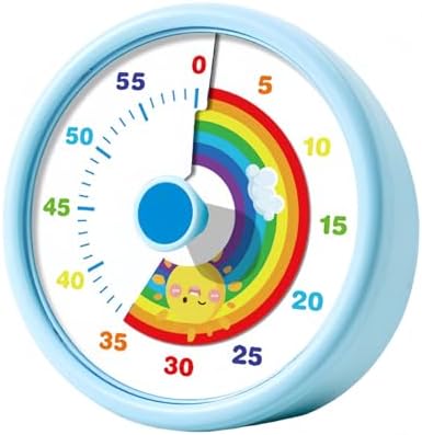 60-Minute Visual Timer for Kids, Visual Countdown Timer for Classroom, Home, Kitchen, School, Work, Kids Timer with Rainbow, Pomodoro Time Management, Non-Ticking (Blue)