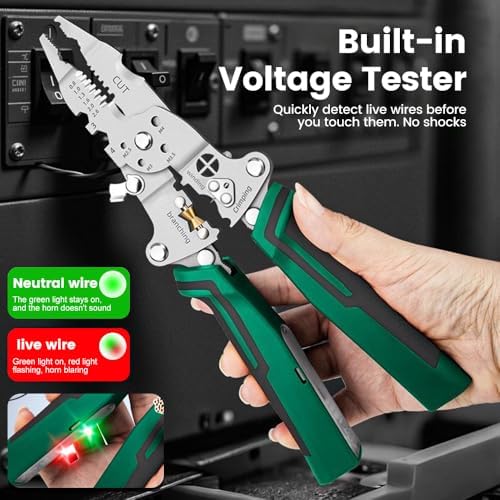 - 【Wire Stripper with Voltage Tester】An integrated voltage detector allows you to quickly and safely verify the presence of electrical current before handling wires. A critical safety feature that adds peace of mind when working with live circuits.