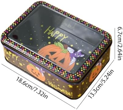 - Spacious Storage Solution: Decorative spacious metal storage box with lid, 7.3 inches wide x 5.2 inches long x 2.6 inches high, perfect for keeping your Halloween treats well-maintained and organized
