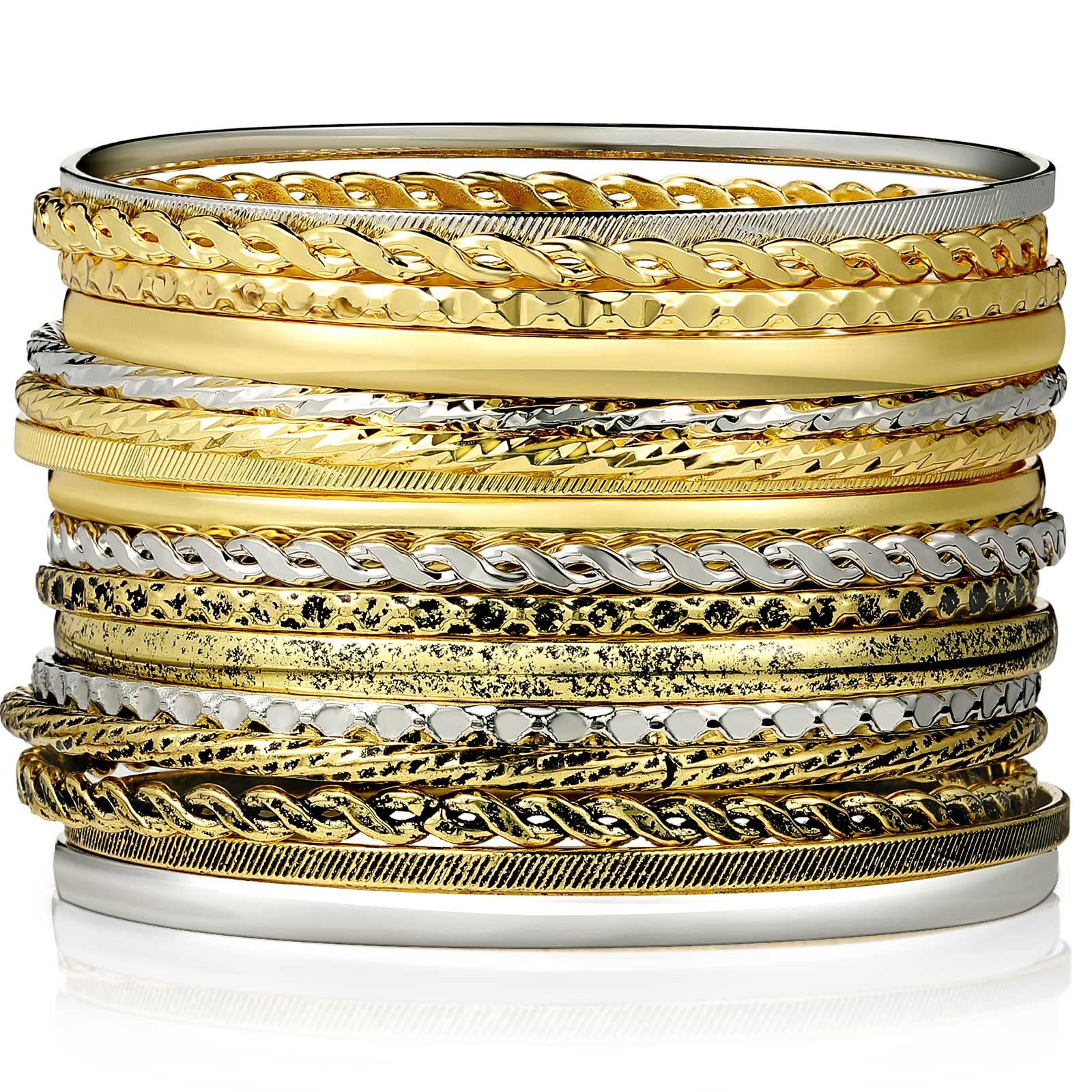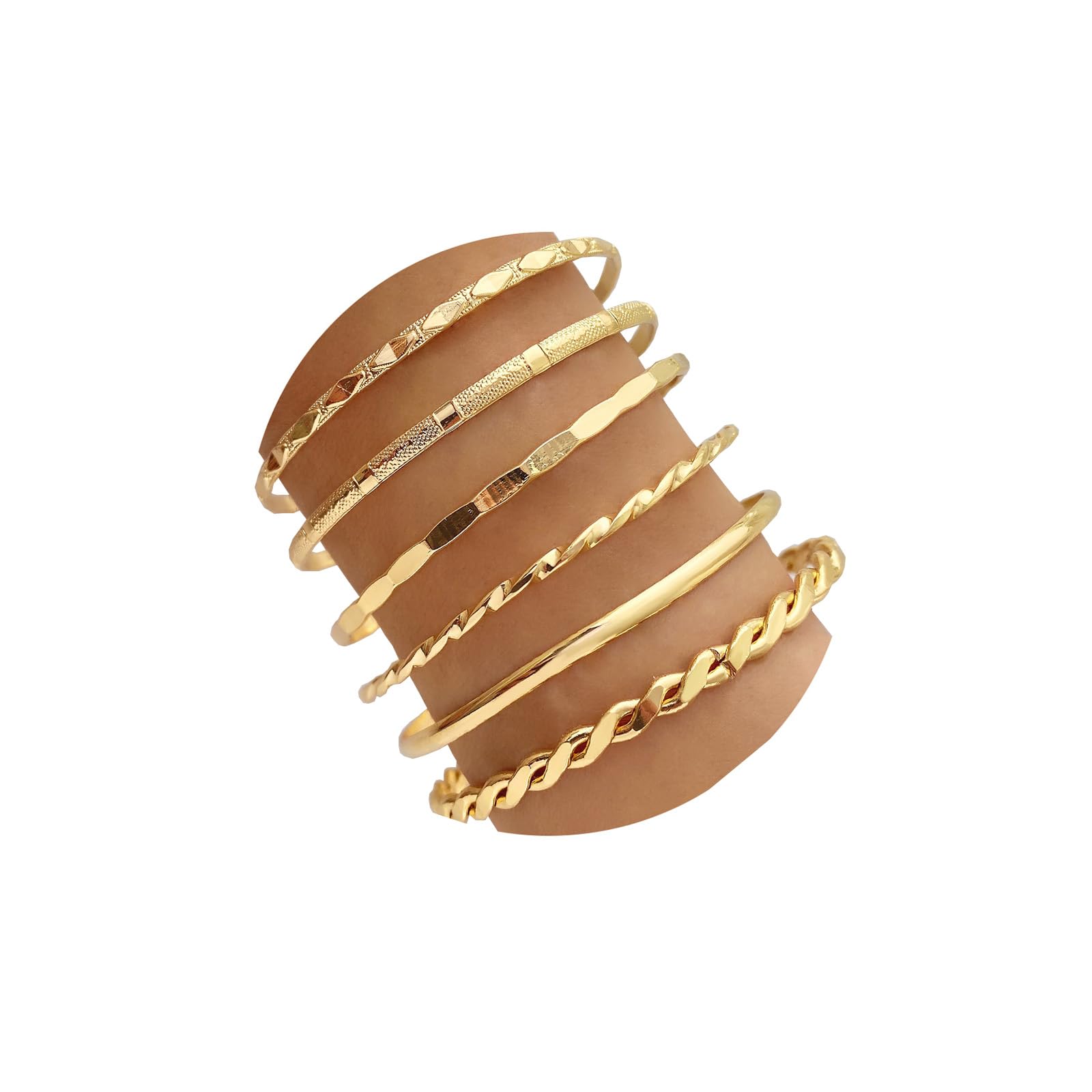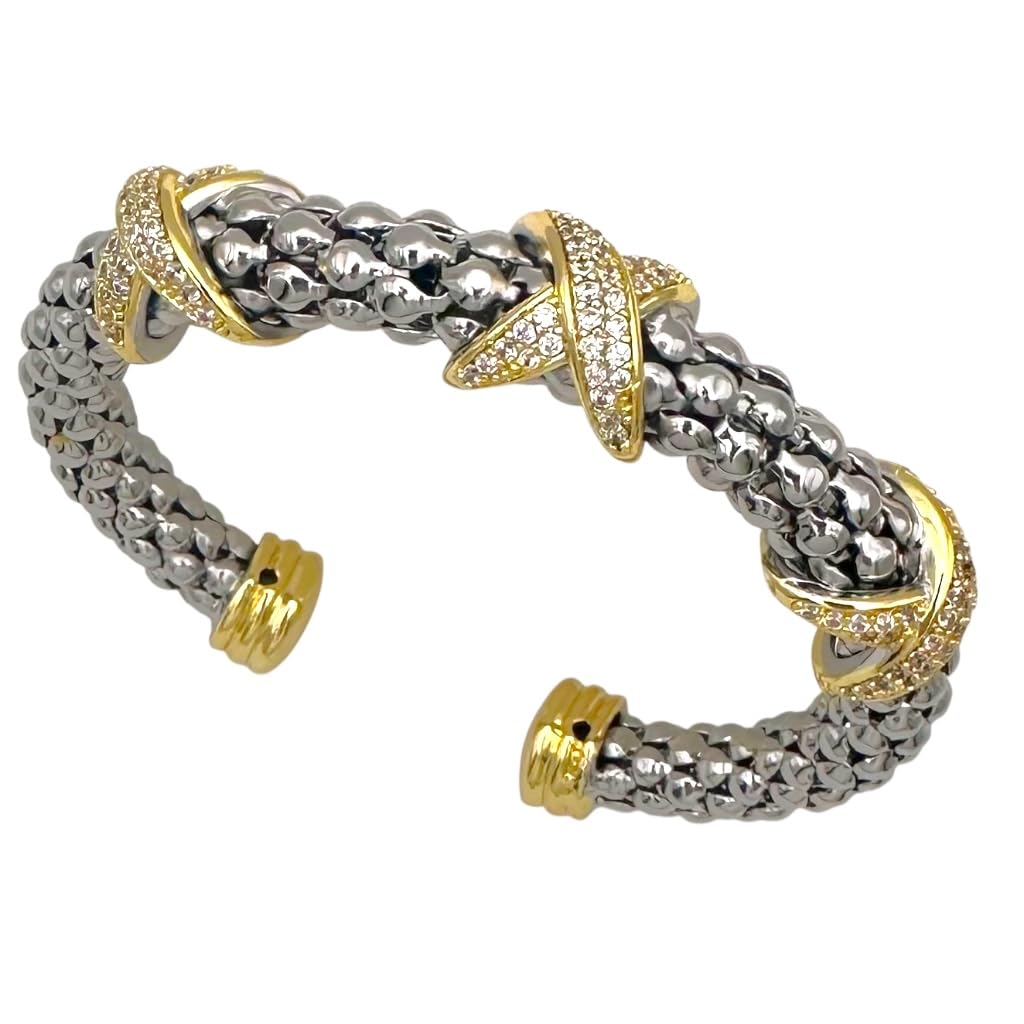 BIJOUX BOBBI Gold Plated Bangle - 6.75" 14K Gold Plated Multi Cross Popcorn Open Cuff Bangle for Women, with Cubic Zircon