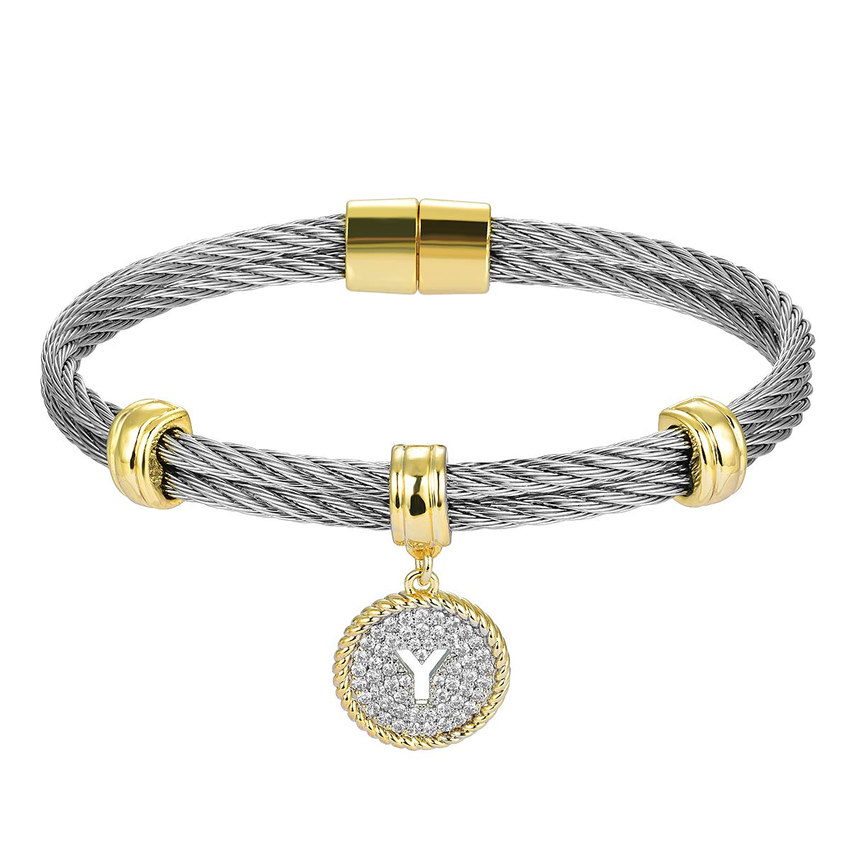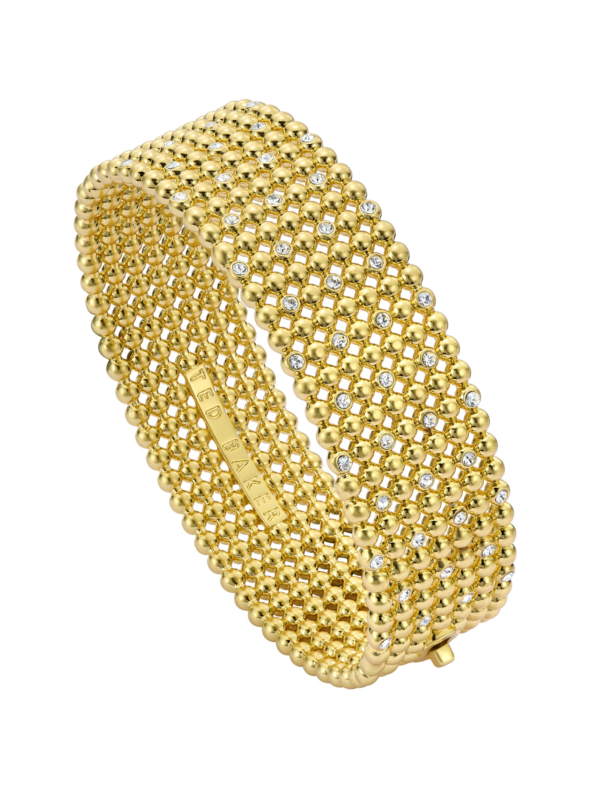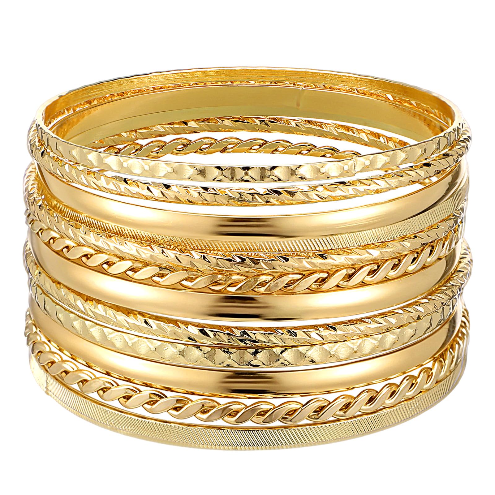 BIJOUX BOBBI Gold Plated Bangle - 6.75" 14K Gold Plated Multi Cross Popcorn Open Cuff Bangle for Women, with Cubic Zircon